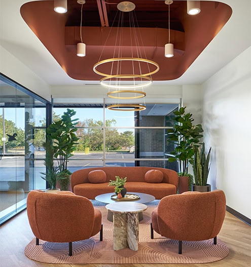 Technology enabled in house design team delivering space plans and 3D renderings, supported by a dedicated furniture project management team.