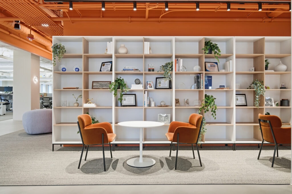 The completed workplace delivers a highly functional, modern headquarters that supports wellness, productivity, and innovation. Employees benefit from adaptable workstations, secure private spaces, and collaborative environments that align with daily workflows, resulting in a cohesive, future-ready space that reflects the company’s identity and supports long-term performance.