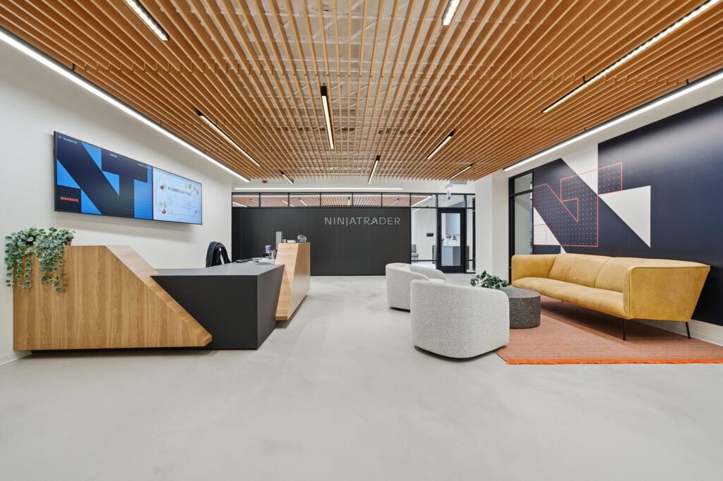 The objective was to create a minimalist modern headquarters that authentically reflects the company’s brand, culture, and values while supporting a variety of workstyles. The client sought a balanced environment that promotes employee wellness, seamless collaboration, focused work, and secure, technology-driven operations.